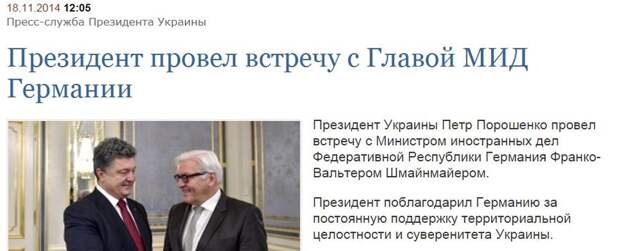 Президент Украины Пётр Порошенко перепутал фамилию министра иностранных дел Германии Франка-Вальтера Штайнмайера и назвал его «Шмайнмайером» в одном из сообщений в своём официальном аккаунте в Twitter.