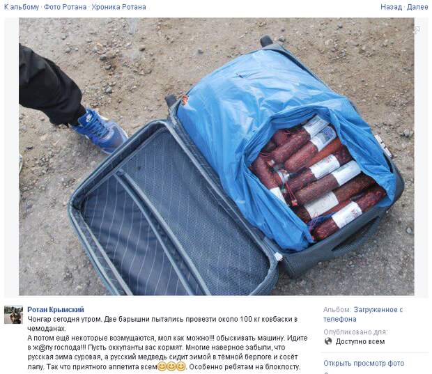 Я так поняла, что кучка гопников отобрала у украинских туристов, едущих в Крым, колбасу.